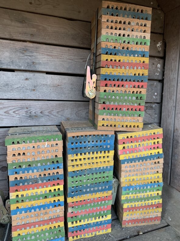 Die Brettchen werden dann wieder zu Stapeln zusammengefügt für das nächste Jahr.
